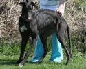Well I can tell you when he revs up that 3 yr old energy and throws his weight around, he's pretty powerful. Fire gave him the what-for tonight when he got too close to her on her bed and he just walked away. Nina attacks him and wants to play and he just ignores her at this point. He's not trained but he's getting better. Still tanking on the water every time he gets the chance so pees hourly - accidents are always in the kitchen at the door. He's food motivated, still eats in his crate, shares cookies. He growled at Blaster when they were both in the same crate - no biggie but neither of them wanted to get out. He often growls when Nina gets too close to him while he's in the crate but he's learning that's not acceptable. He's walking better - saw 2 cats today. Jim couldn't break his focus but he didn't charge or lunge or take Jim for a ride - that's better.