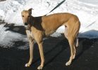 ------------ A note from Penny's Mom's daughter; "Penny was born in August of 2008, she is a fawn with black muzzle. She is AKC registered, from coursing bloodlines, but has never raced or done coursing. My mom has owned her since she was 12 weeks old (she shipped in from Idaho). She weighs about 51#. She crates well, but should not be in a "kennel" situation where she can beat her tail up, as she is currently recovered from having the last 3 vertebrae of her tail amputated due to this. She is a sweet dog, lives well in the house, but is very quiet about asking to go out, so attention needs to be paid to this in a home. She is not, however, quiet about asking to be let back in (she jumps on the door). She is a bit of a princess and will counter surf if given the chance. She likes to run & play with medium to larger dogs, but does play with her mouth, & will put the head of smaller dogs in her mouth. She walks on a leash, but has really never been taught not to pull & jump at cars when on a leash. My mom's utmost concern is that Penny gets a good home where there is a fenced-in yard and that she gets out to play a lot. In her ideal world, she wants to meet the people adopting Penny and see their yard. I told her that might be hard to do, but that they most likely would be able to contact her & let her know what they have, & how Penny is doing. Attached are some pictures of Penny."
